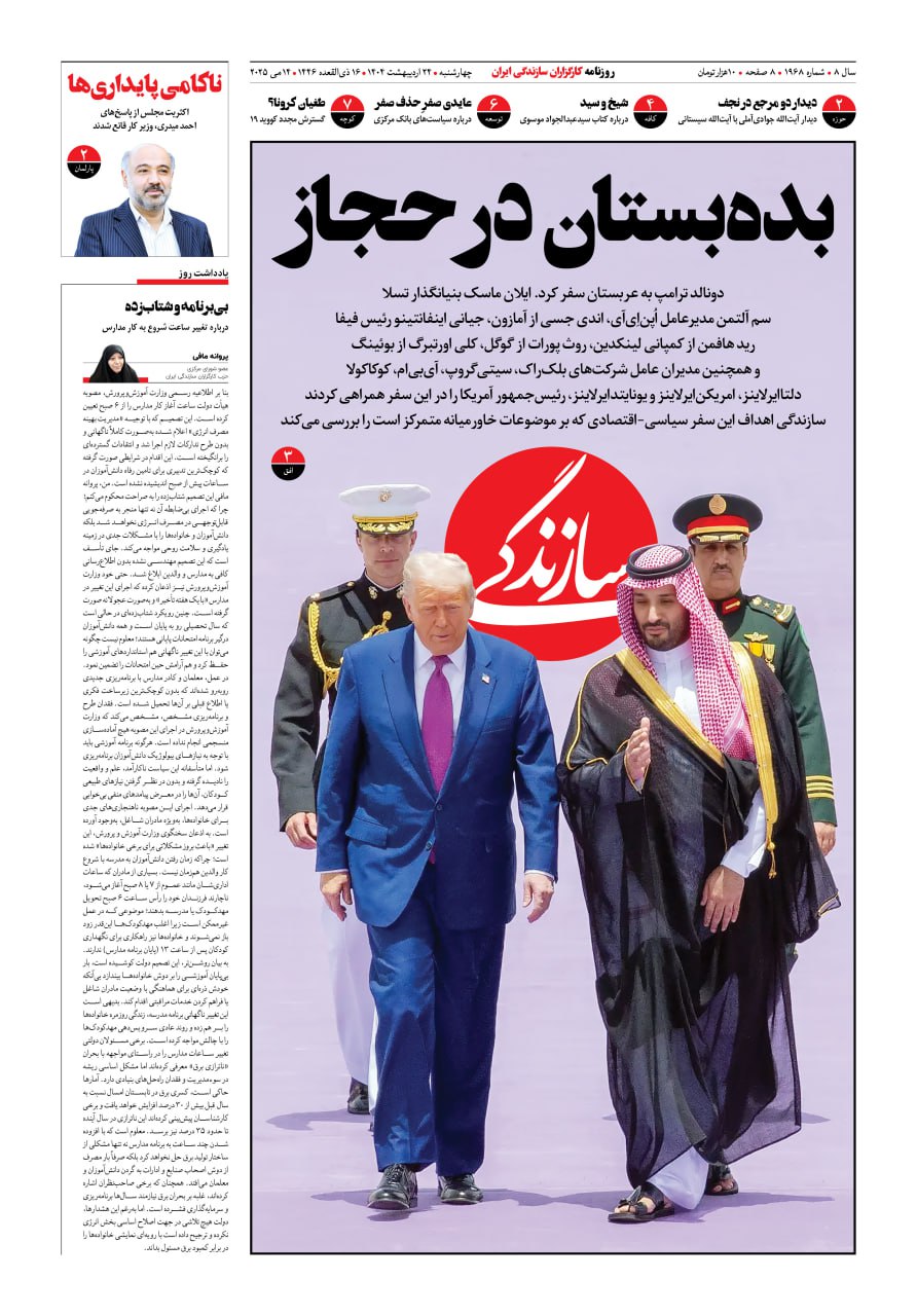 شماره ۲۱۳۴ روزنامه سازندگی چهارشنبه ۱۴۰۴/۰۹/۱۹ ۱۹-۰۹-۱۴۰۴-۲۱۳۴ Sazandegi