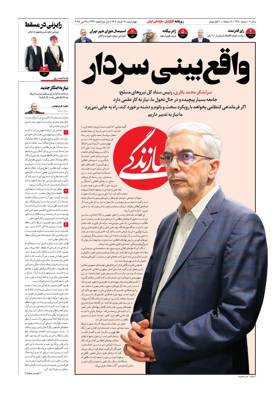 شماره ۱۹۸۰ روزنامه سازندگی چهارشنبه ۱۴۰۴/۰۳/۰۷