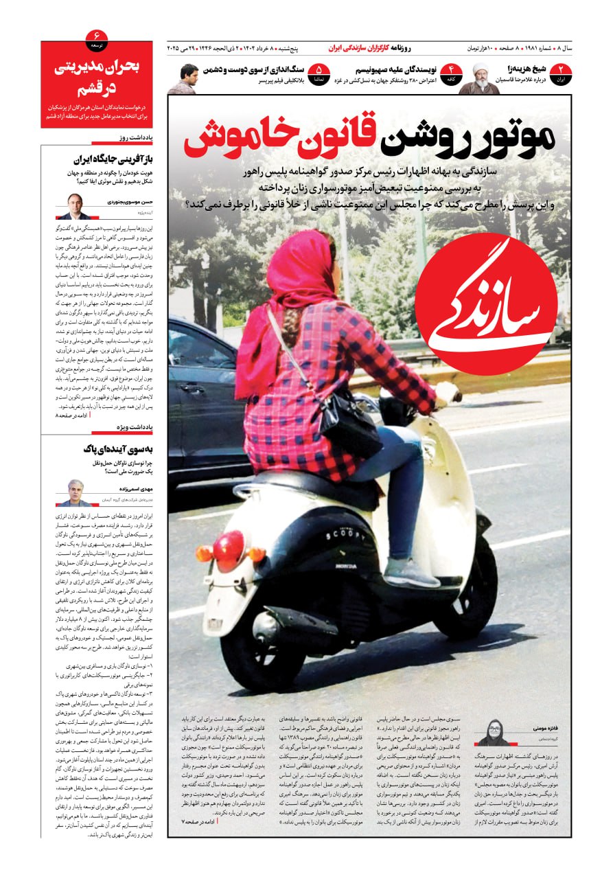 شماره ۲۱۳۵ روزنامه سازندگی پنجشنبه ۱۴۰۴/۰۹/۲۰