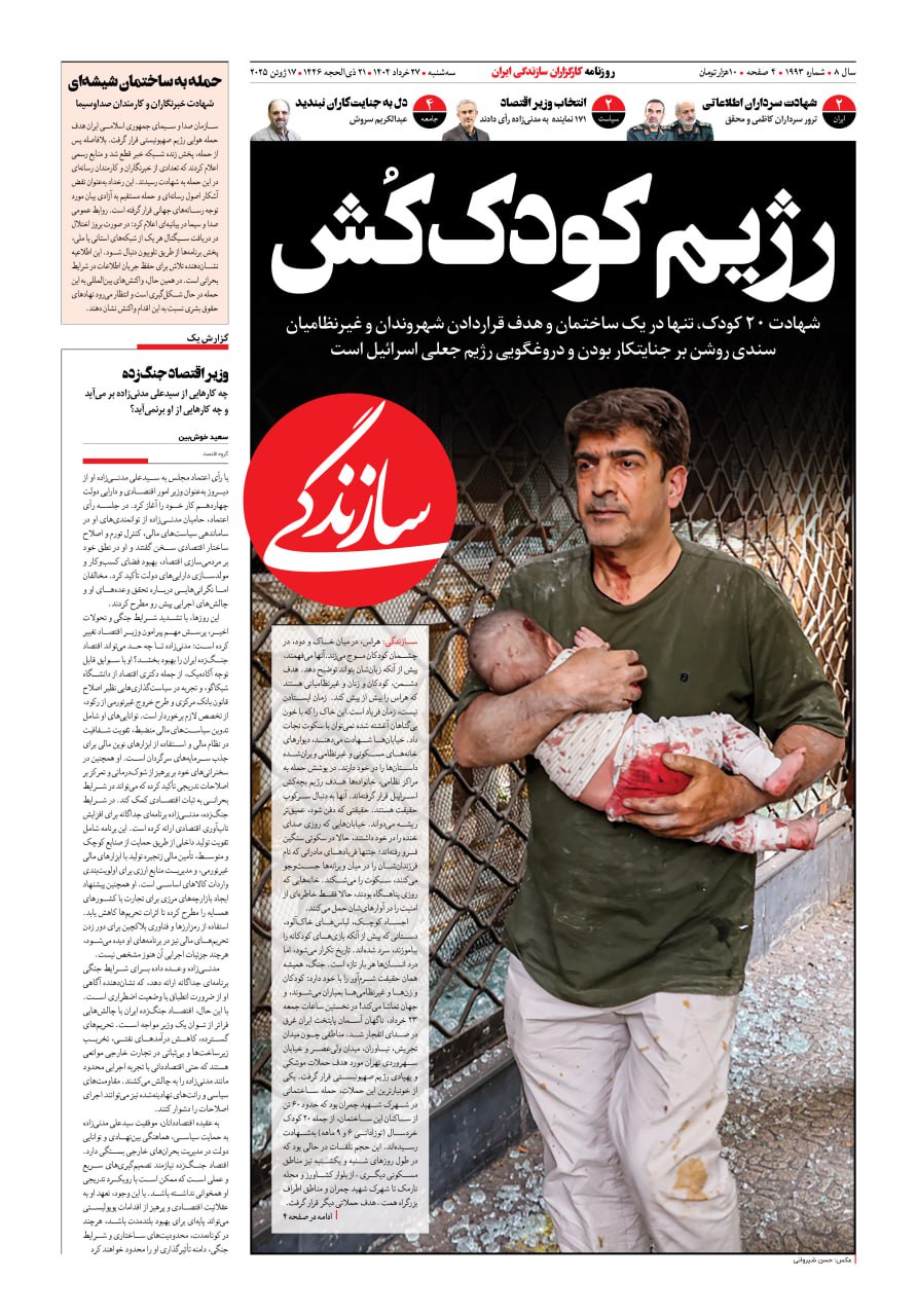 شماره ۲۱۳۵ روزنامه سازندگی پنجشنبه ۱۴۰۴/۰۹/۲۰
