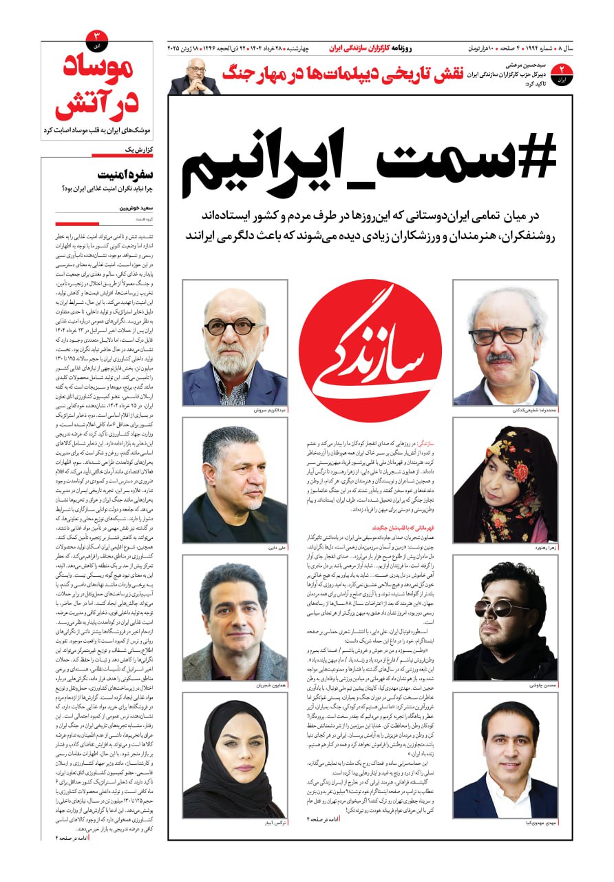 شماره ۲۱۳۴ روزنامه سازندگی چهارشنبه ۱۴۰۴/۰۹/۱۹ ۱۹-۰۹-۱۴۰۴-۲۱۳۴ Sazandegi