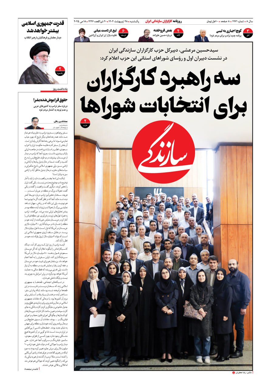 شماره ۲۱۳۴ روزنامه سازندگی چهارشنبه ۱۴۰۴/۰۹/۱۹ ۱۹-۰۹-۱۴۰۴-۲۱۳۴ Sazandegi