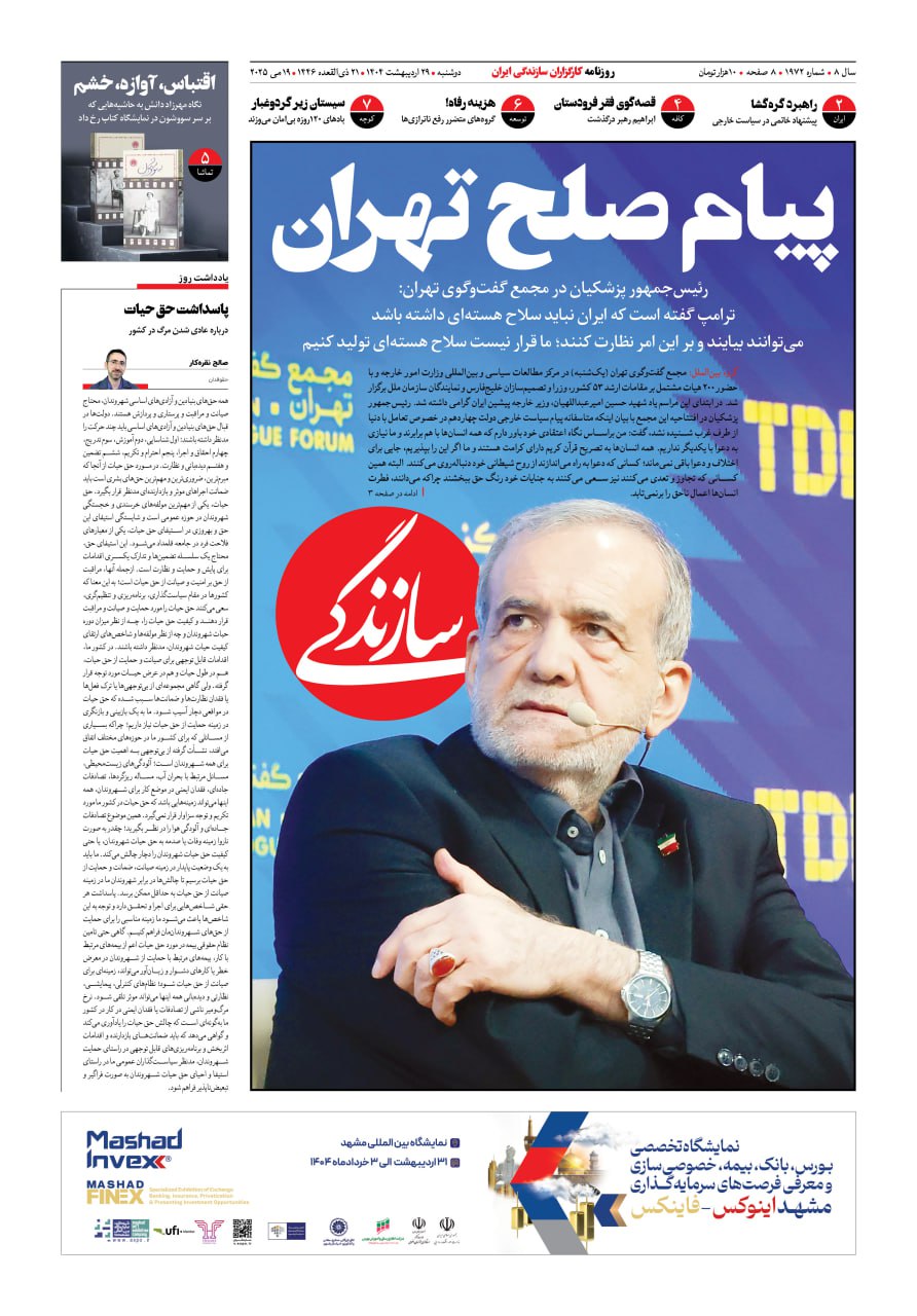 شماره ۲۱۳۵ روزنامه سازندگی پنجشنبه ۱۴۰۴/۰۹/۲۰