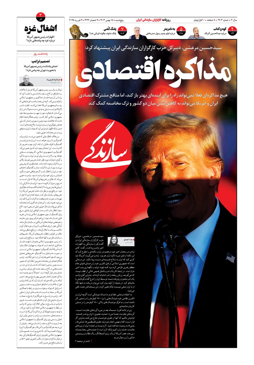 شماره ۲۱۳۸ روزنامه سازندگی دوشنبه ۱۴۰۴/۰۹/۲۴