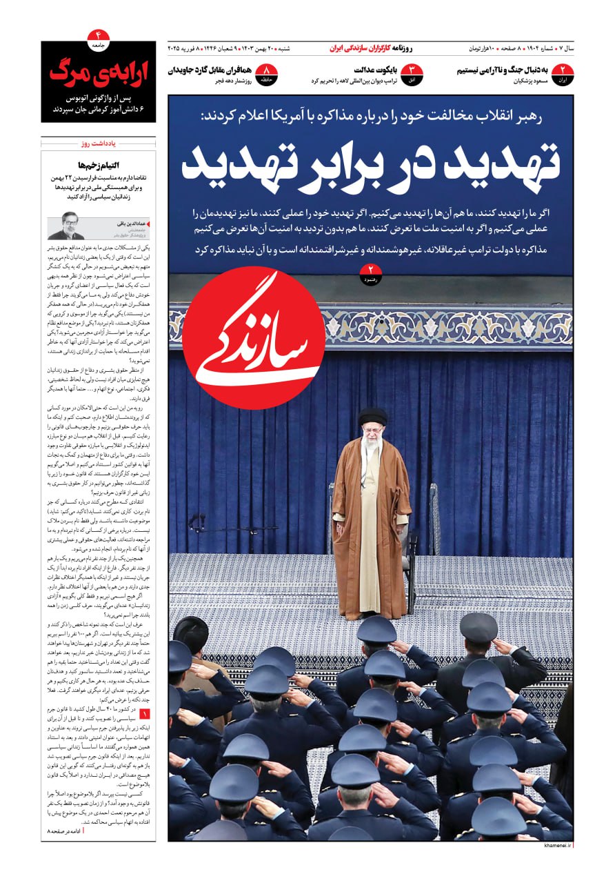 شماره ۲۱۳۸ روزنامه سازندگی دوشنبه ۱۴۰۴/۰۹/۲۴