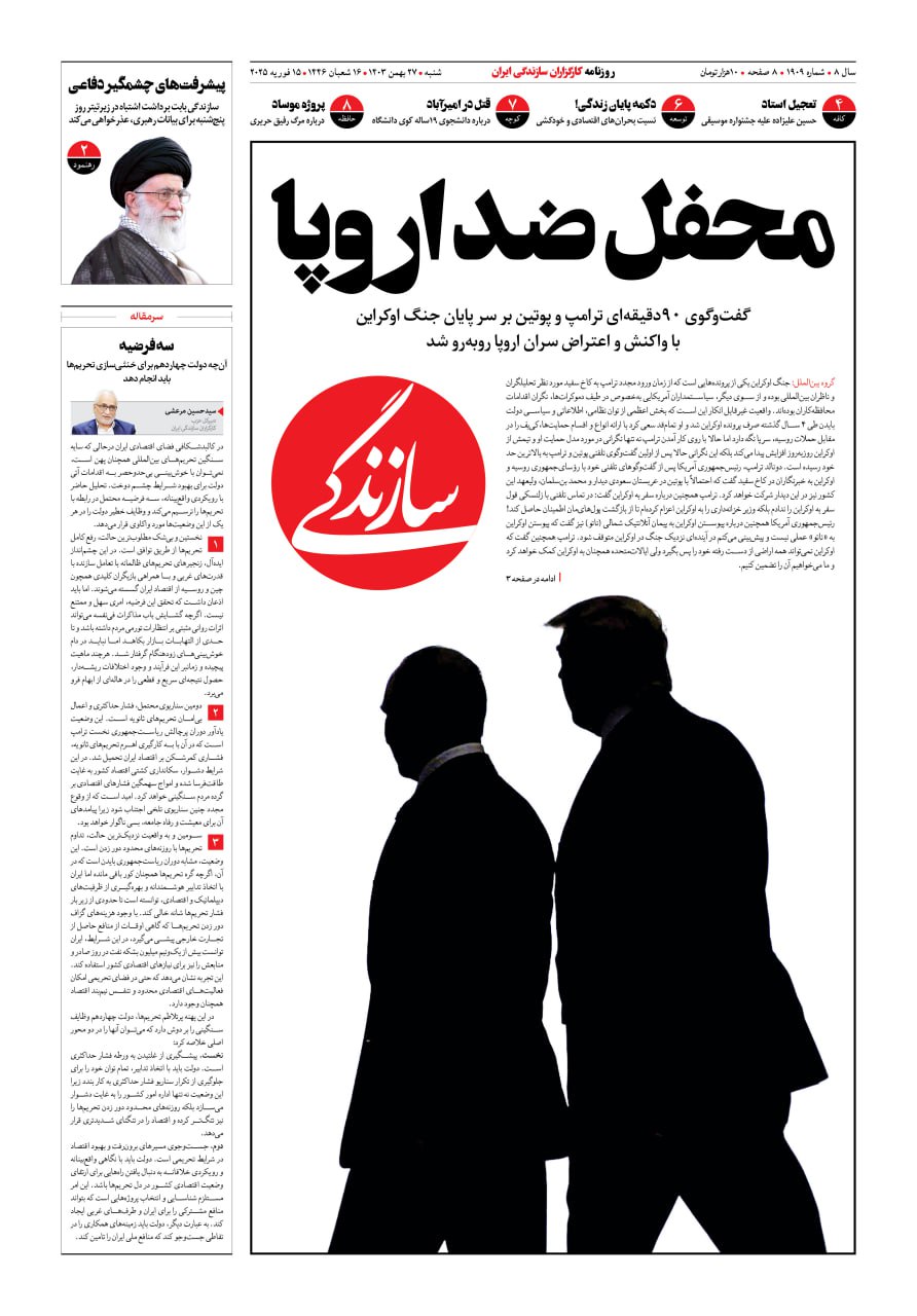 شماره ۱۹۰۹ روزنامه سازندگی شنبه ۱۴۰۳/۱۱/۲۷