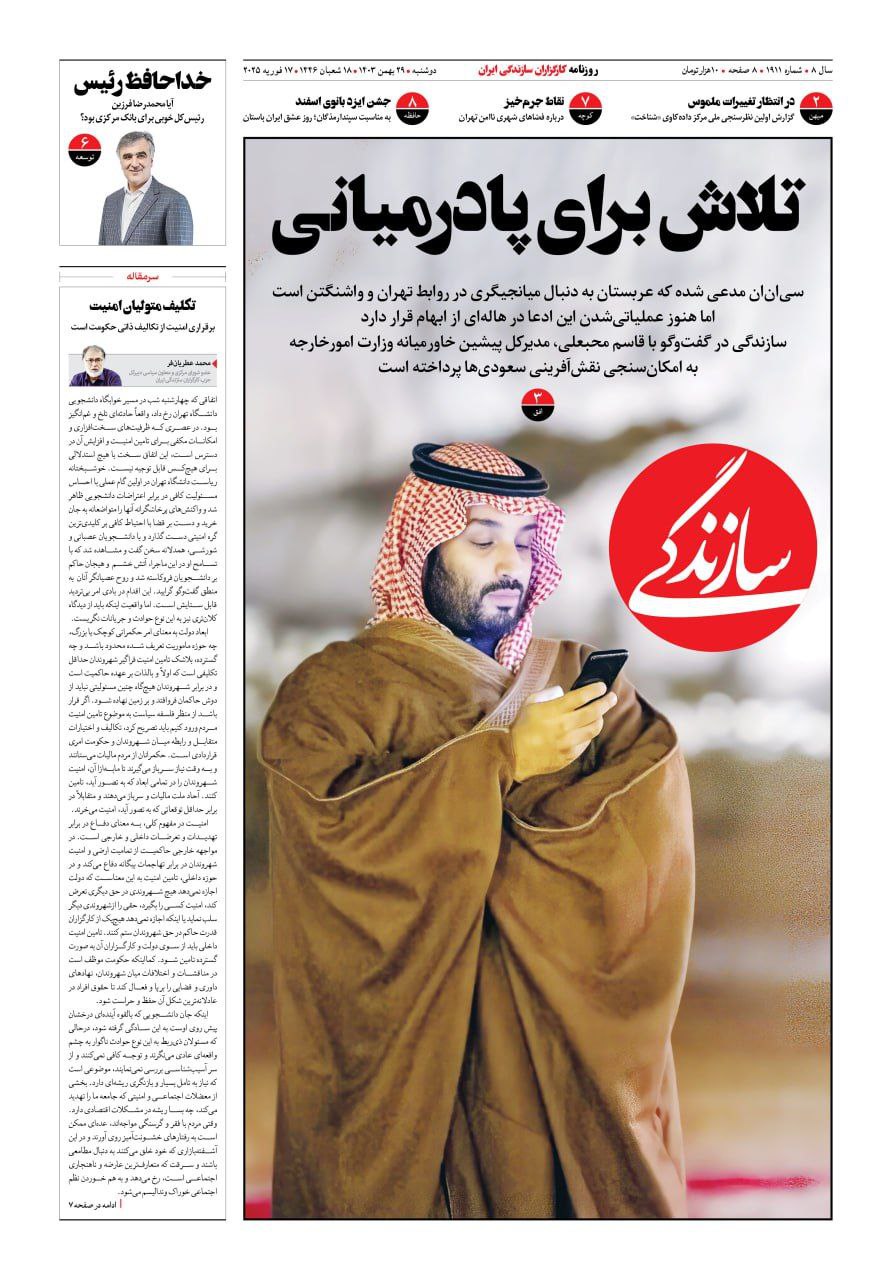 شماره ۲۱۳۶ روزنامه سازندگی شنبه ۱۴۰۴/۰۹/۲۲