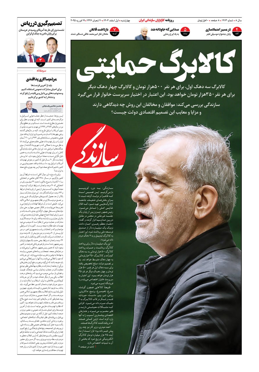 شماره ۲۱۳۷ روزنامه سازندگی یکشنبه ۱۴۰۴/۰۹/۲۳