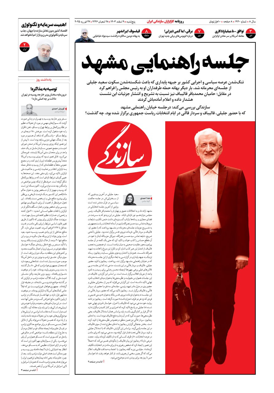 شماره ۱۹۲۰ روزنامه سازندگی پنجشنبه ۱۴۰۳/۱۲/۰۹