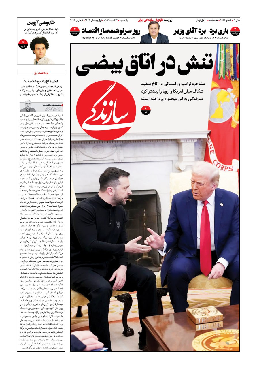 شماره ۲۱۳۸ روزنامه سازندگی دوشنبه ۱۴۰۴/۰۹/۲۴