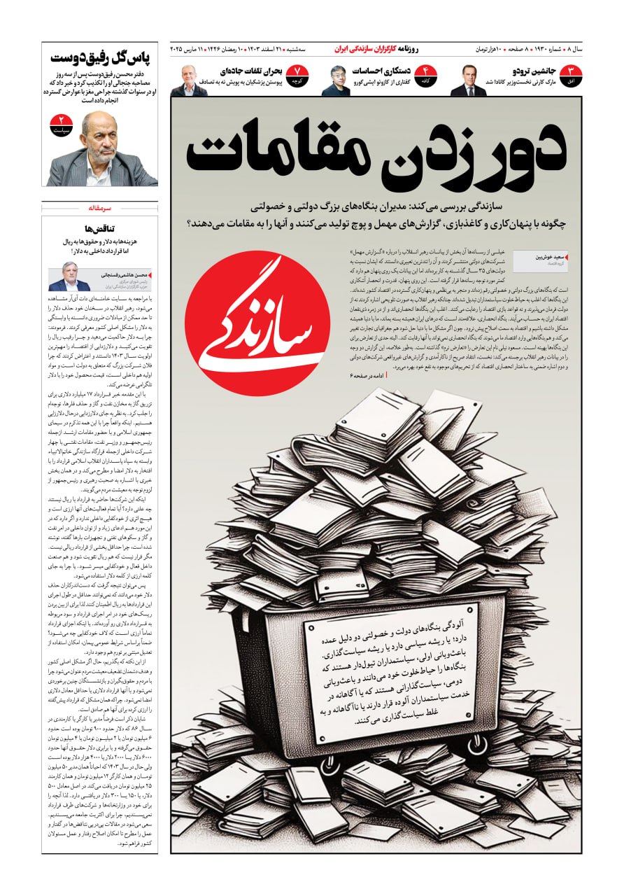 شماره ۲۱۳۷ روزنامه سازندگی یکشنبه ۱۴۰۴/۰۹/۲۳