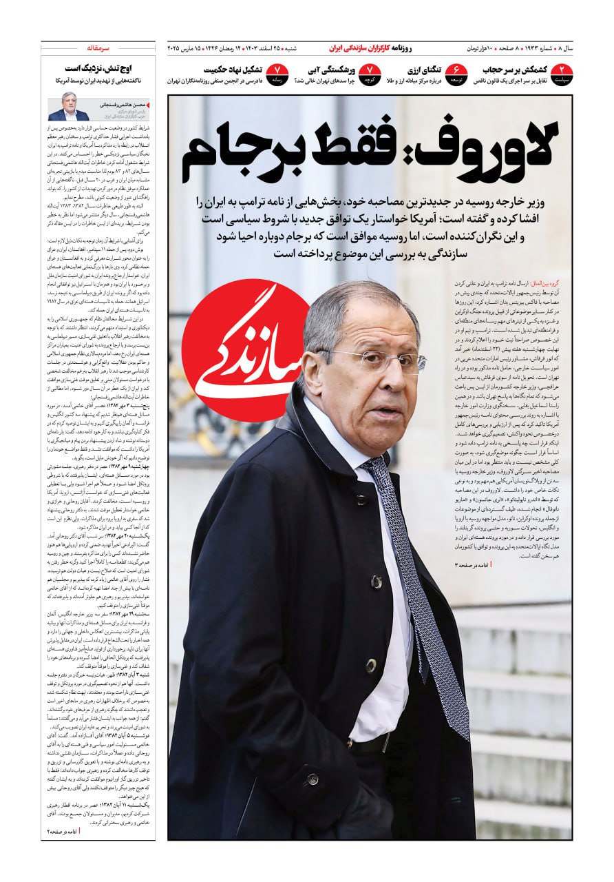 شماره ۲۱۳۸ روزنامه سازندگی دوشنبه ۱۴۰۴/۰۹/۲۴