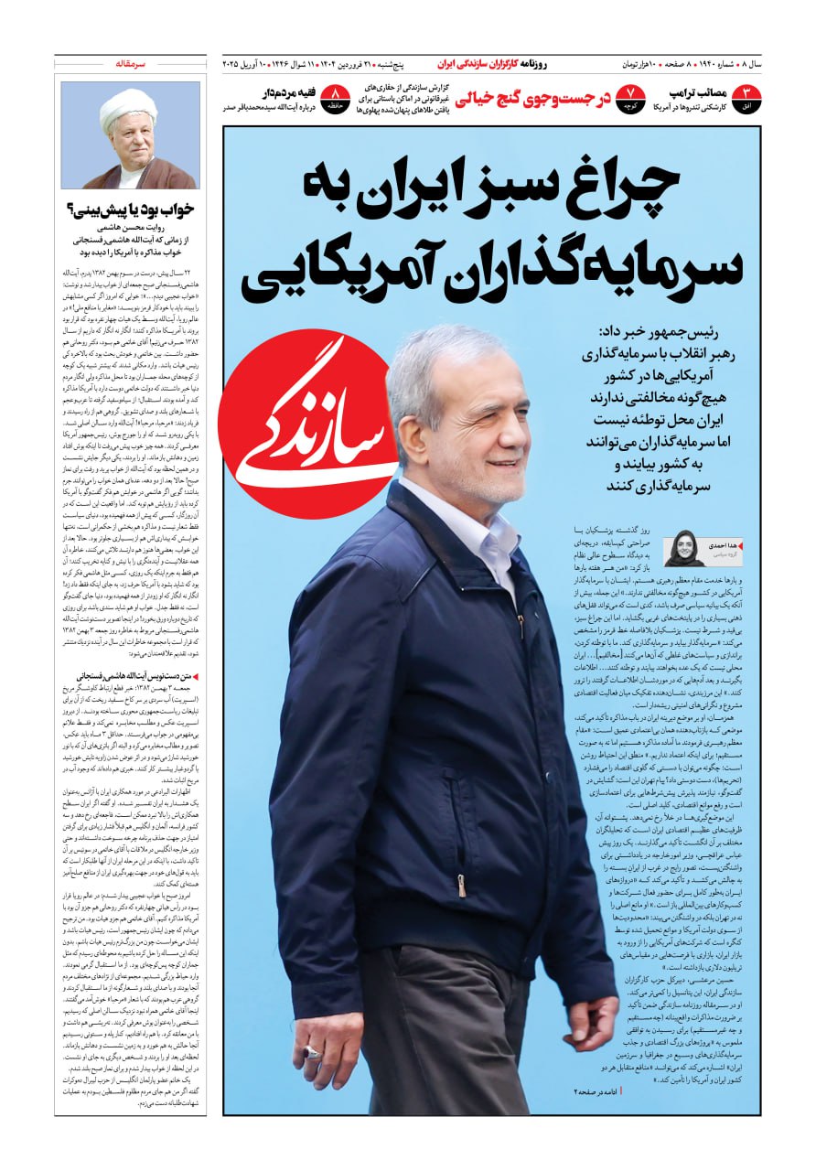 شماره ۲۱۳۵ روزنامه سازندگی پنجشنبه ۱۴۰۴/۰۹/۲۰