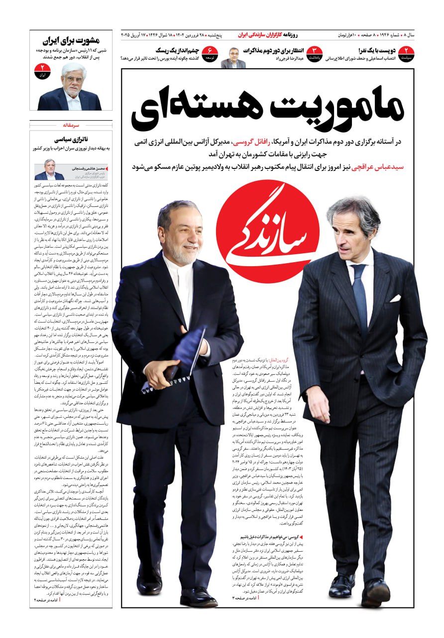 شماره ۲۱۳۵ روزنامه سازندگی پنجشنبه ۱۴۰۴/۰۹/۲۰
