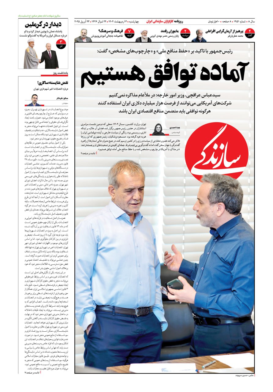 شماره ۲۱۳۵ روزنامه سازندگی پنجشنبه ۱۴۰۴/۰۹/۲۰