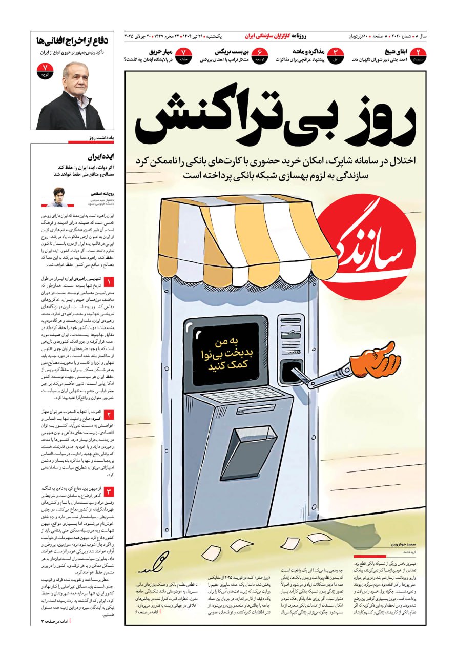 شماره ۲۱۳۴ روزنامه سازندگی چهارشنبه ۱۴۰۴/۰۹/۱۹ ۱۹-۰۹-۱۴۰۴-۲۱۳۴ Sazandegi