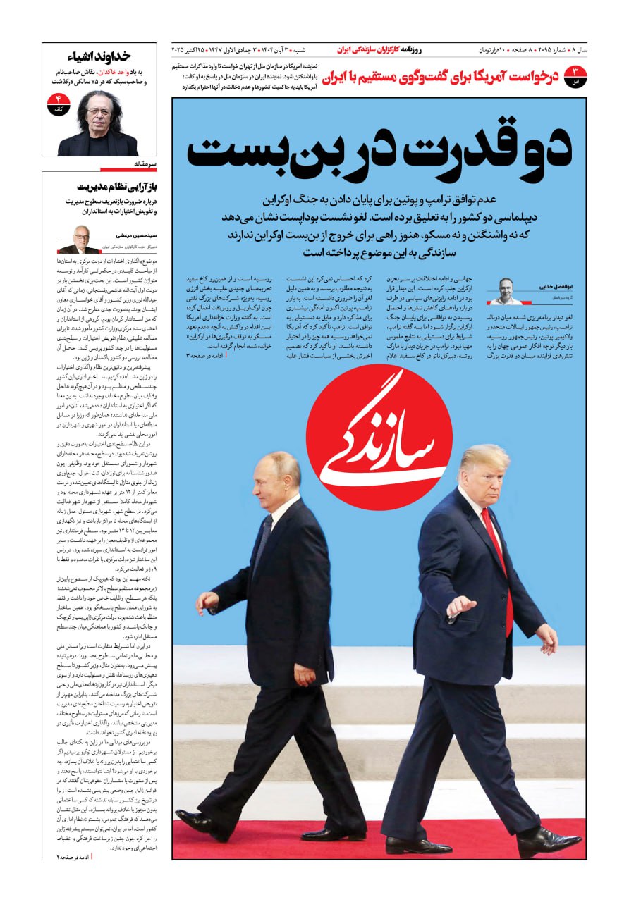 شماره ۲۱۰۸ روزنامه سازندگی یکشنبه ۱۴۰۴/۰۸/۱۸