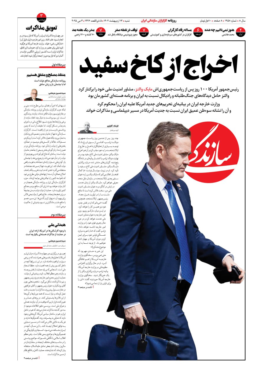 شماره ۲۱۳۸ روزنامه سازندگی دوشنبه ۱۴۰۴/۰۹/۲۴