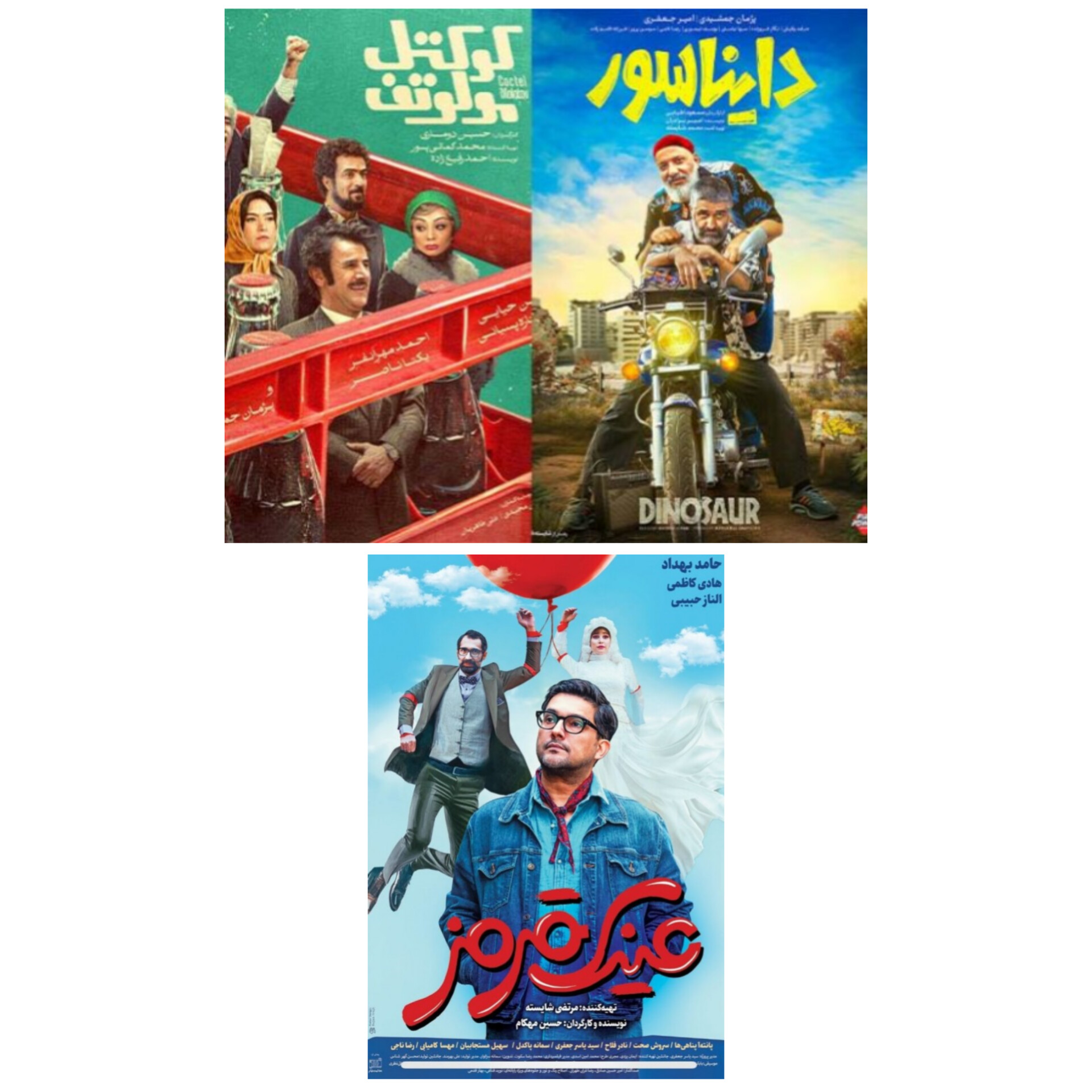 نوروز امسال سه فیلم کمدی روی پرده رفت. «دایناسور» به کارگردانی مسعود اطیابی که تا به امروز بیش از ۱۲۱ میلیارد تومان فروش کرده و می‌توان آن را یکی از رکوردشکنان امسال دانست. «کوکتل مولوتف» به کارگردانی امیرحسین دوماری که در رتبه سوم جدول فروش پس از «موسی کلیم‌الله» نشسته است و حدود ۵۰ میلیارد فروخته و «عینک قرمز» به کارگردانی حسین مهکام که نزدیک ۵۰۰ میلیون تومان فروش کرد و به دلیل فروش پایین تقریباً اکران آن به پایان رسیده و فیلم دیگری جایگزین آن شد.