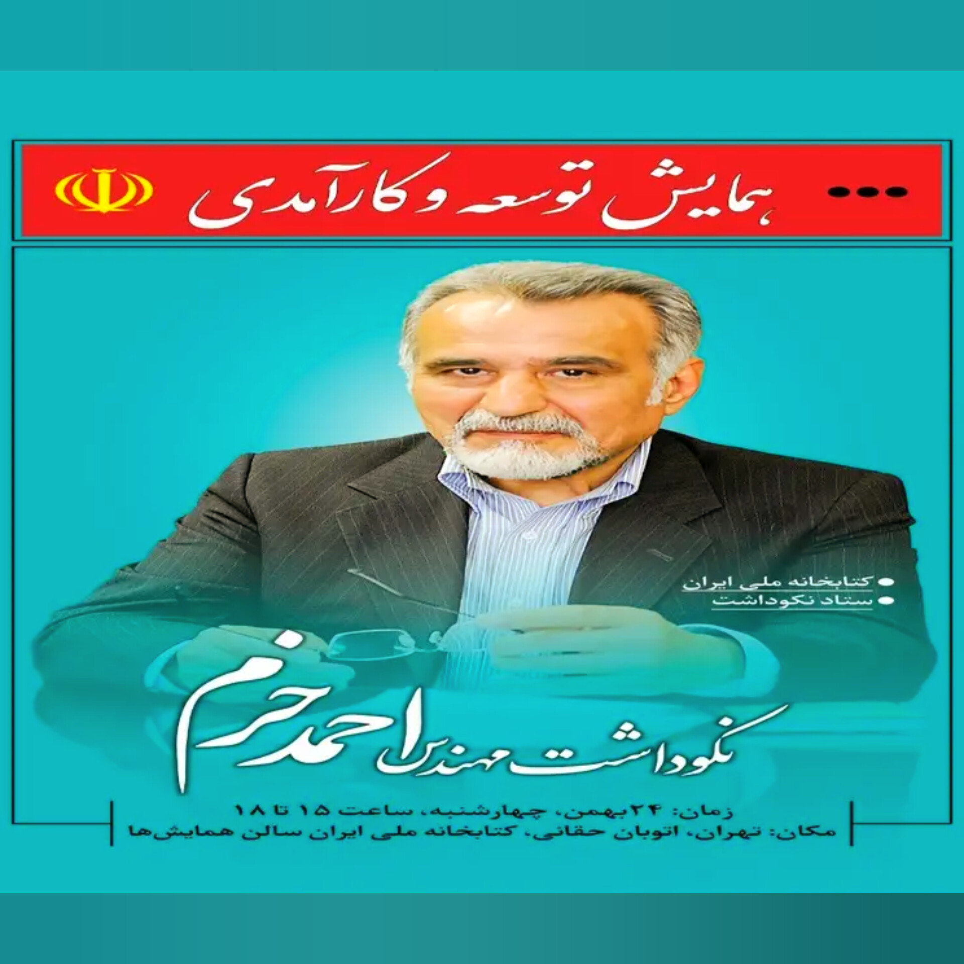 اینجانب بر این عقیده هستم که مهندس احمد خرم یک سرمایه ملی و الگوی مناسبی برای مدیران جوان کشور بوده و آنان میتوانند با شناخت توانمندیها و شایستگیهای این مدیر خدوم از آرمانها و ویژگیهای مدیریتی او پیروی کرده و موفق شوند که بیشازپیش در توسعه و پیشرفت کشور سهیم باشند. از خداوند منان سلامتی و توفیقات الهی را برای آقای مهندس خرم آرزو کرده و از دستاندرکاران برگزاری مراسم نکوداشت ایشان نیز تشکر و قدردانی مینمایم.