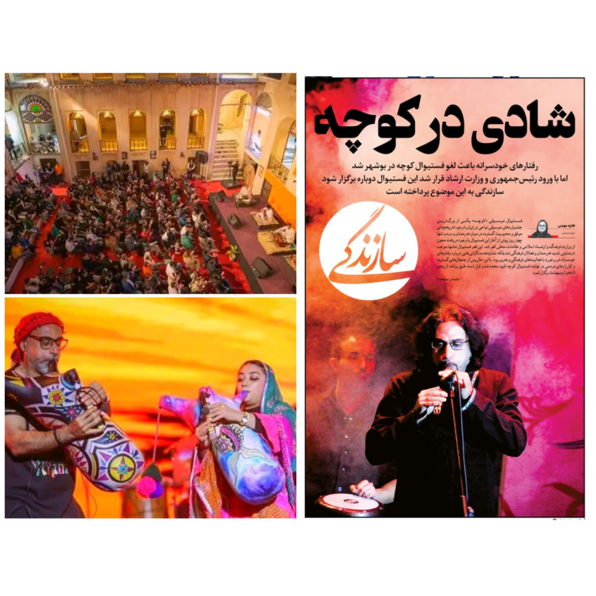 روز سه‌شنبه گزارشی با عنوان (شادی در کوچه) در روزنامه سازندگی به چاپ رسید که به اتفاقات بوشهر، فستیوال کوچه و جلوگیری از برگزاری آن پرداخته بود.