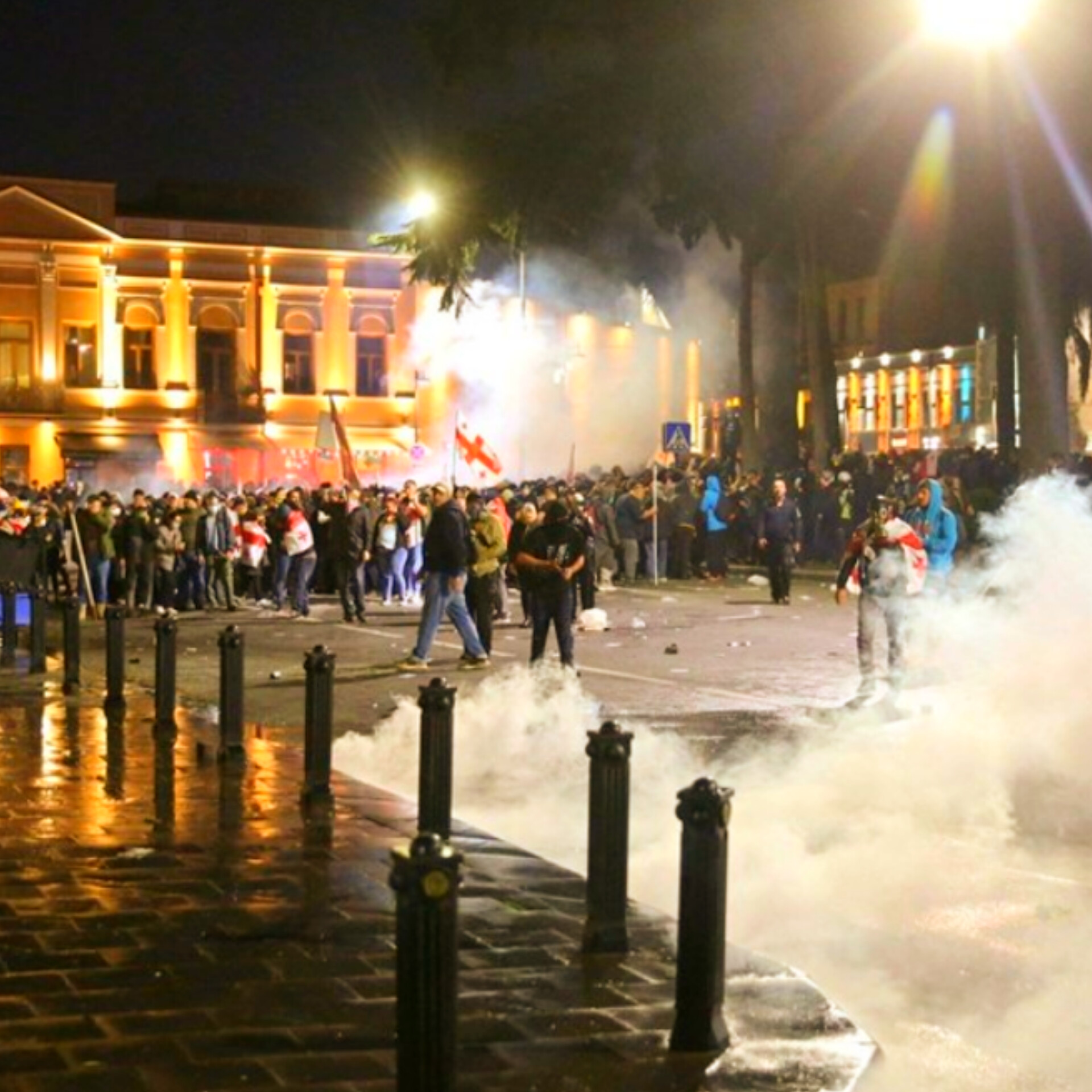 گرجستان روز شنبه یکی از پرالتهابترین روزهای سیاسی خود در سالهای اخیر را تجربه کرد؛ روزی که قرار بود، عرصه مشارکت دموکراتیک در انتخابات محلی باشد اما به صحنه درگیریهای خیابانی و بحران سیاسی تازهای در تفلیس تبدیل شد. همزمان با برگزاری انتخابات شهرداریها، صدها تن از مخالفان دولت با در دست داشتن پرچمهای اتحادیه اروپا و شعارهای ضد دولتی به خیابانهای پایتخت سرازیر شدند و شامگاه شنبه با عبور از موانع امنیتی، وارد حیاط کاخ ریاستجمهوری در خیابان «آتونلی» شدند. به گزارش خبرنگار «ریانووستی»، نیروهای پلیس برای متفرق کردن جمعیت خشمگین از گاز اشکآور، اسپری فلفل و خودروهای آبپاش استفاده کردند. شاهدان عینی میگویند پس از آنکه معترضان به ورودی اقامتگاه ریاستجمهوری نزدیک شدند، نیروهای امنیتی مجبور به استقرار یگانهای ویژه و بستن کامل محوطه شدند. درگیریها تا نیمهشب ادامه یافت و در برخی مناطق اطراف کاخ، صدای انفجار نارنجکهای دودزا و فریاد معترضان شنیده میشد.