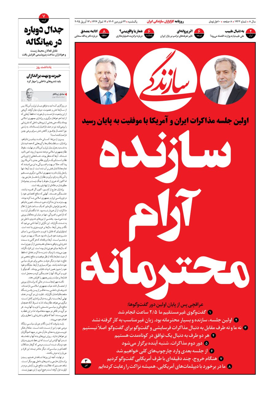 شماره ۲۱۳۴ روزنامه سازندگی چهارشنبه ۱۴۰۴/۰۹/۱۹ ۱۹-۰۹-۱۴۰۴-۲۱۳۴ Sazandegi