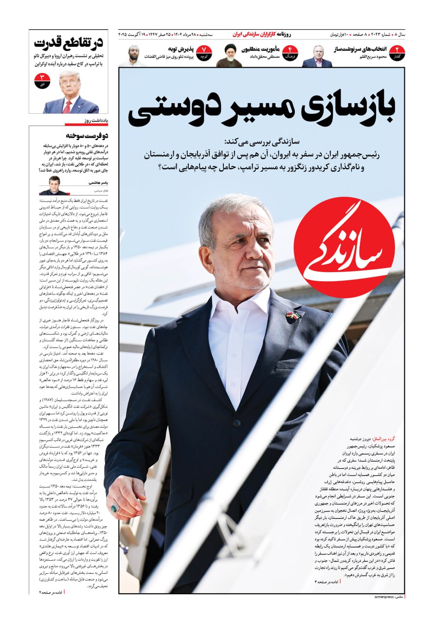 شماره ۲۱۲۷ روزنامه سازندگی سهشنبه ۱۴۰۴/۰۹/۱۱