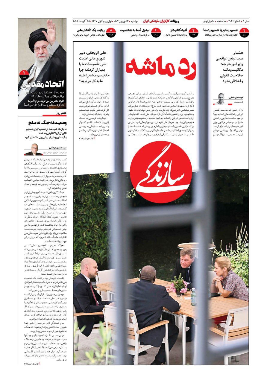 شماره ۲۱۲۷ روزنامه سازندگی سهشنبه ۱۴۰۴/۰۹/۱۱