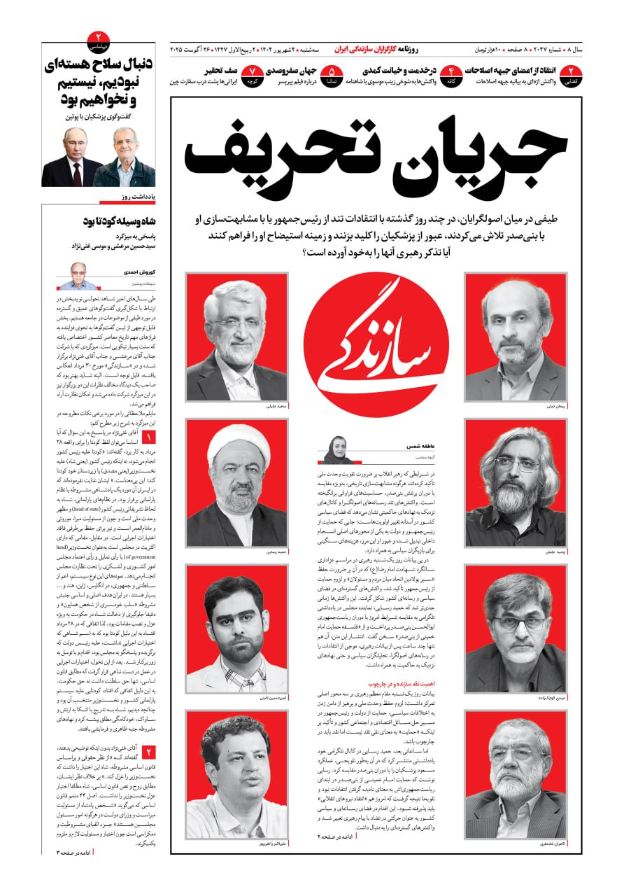 شماره ۲۰۴۷ روزنامه سازندگی ‌سه‌شنبه ۱۴۰۴/۰۶/۰۴