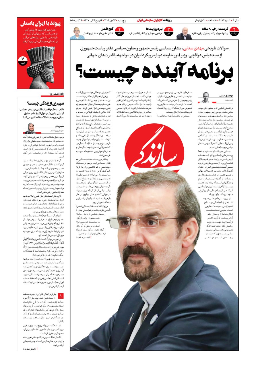 شماره ۲۱۲۹ روزنامه سازندگی پنجشنبه ۱۴۰۴/۰۹/۱۳
