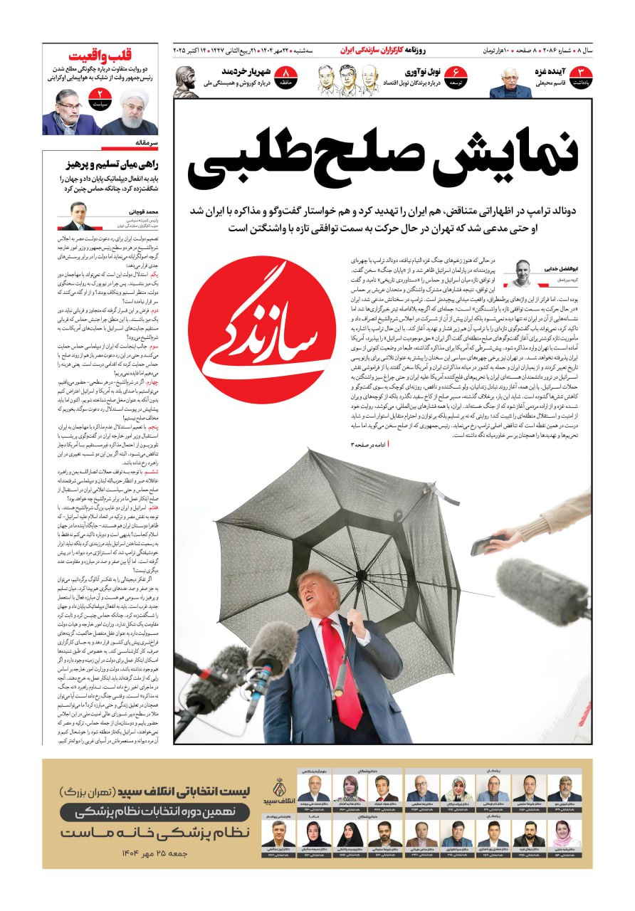 شماره ۲۱۲۹ روزنامه سازندگی پنجشنبه ۱۴۰۴/۰۹/۱۳