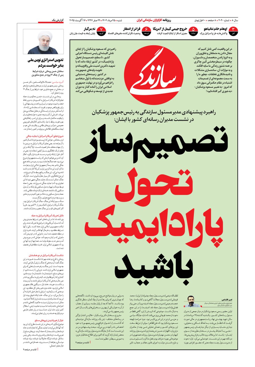 شماره ۲۱۲۹ روزنامه سازندگی پنجشنبه ۱۴۰۴/۰۹/۱۳