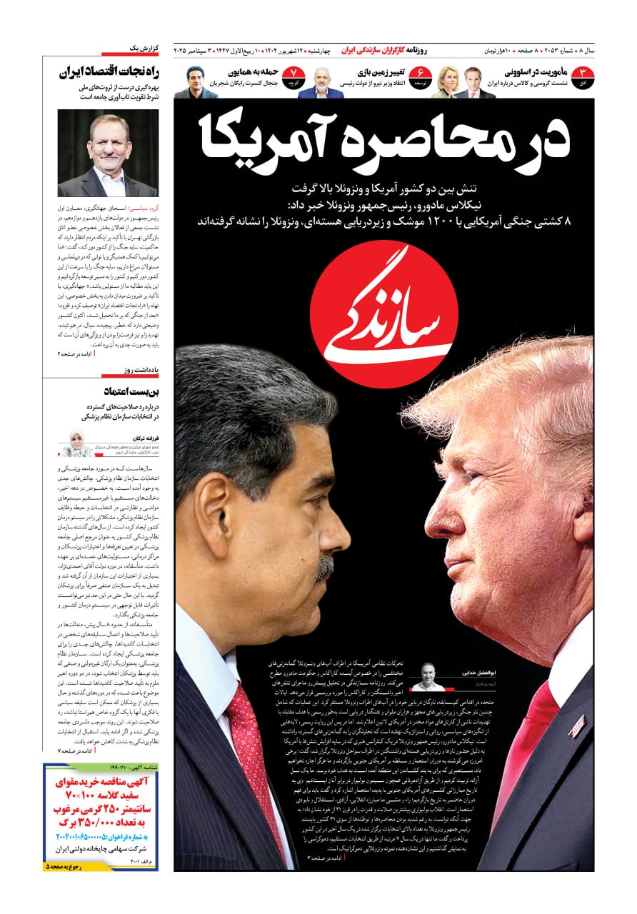 شماره ۲۱۷۱ روزنامه سازندگی سهشنبه ۱۴۰۴/۱۱/۰۷