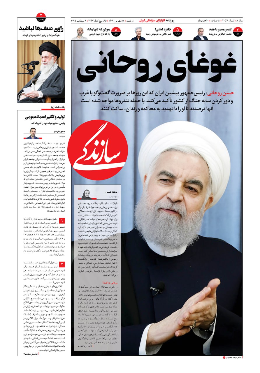 شماره ۲۰۵۷ روزنامه سازندگی دوشنبه ۱۴۰۴/۰۶/۱۷