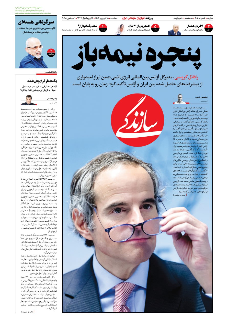 شماره ۲۱۳۰ روزنامه سازندگی شنبه ۱۴۰۴/۰۹/۱۵ https://saazandegi.ir/wp-content/uploads/2025/12/15-09-1404-2130-Sazandegi-1.pdf