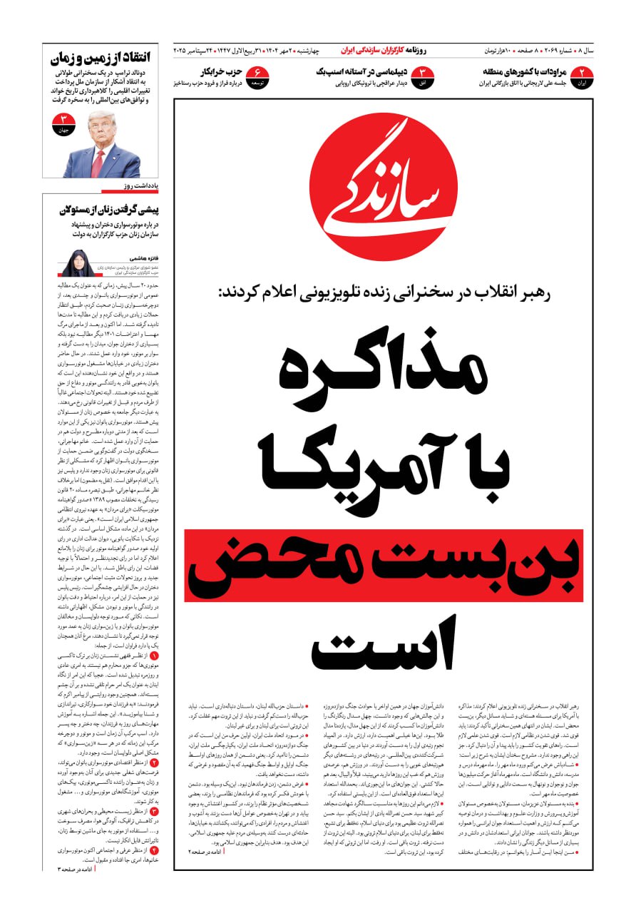 شماره ۲۱۲۹ روزنامه سازندگی پنجشنبه ۱۴۰۴/۰۹/۱۳