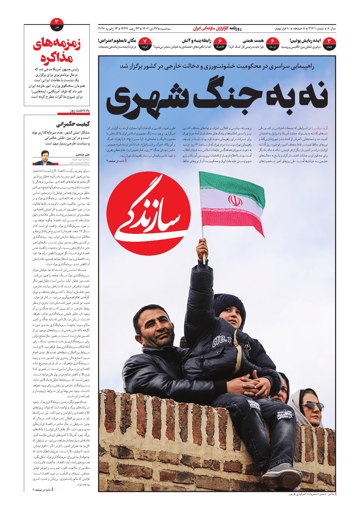 شماره ۲۱۶۶ روزنامه سازندگی سهشنبه ۱۴۰۴/۱۰/۳۰