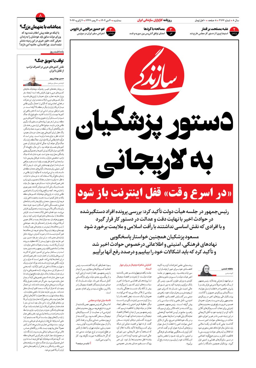 شماره ۲۱66 روزنامه سازندگی سهشنبه ۱۴۰۴/10/30