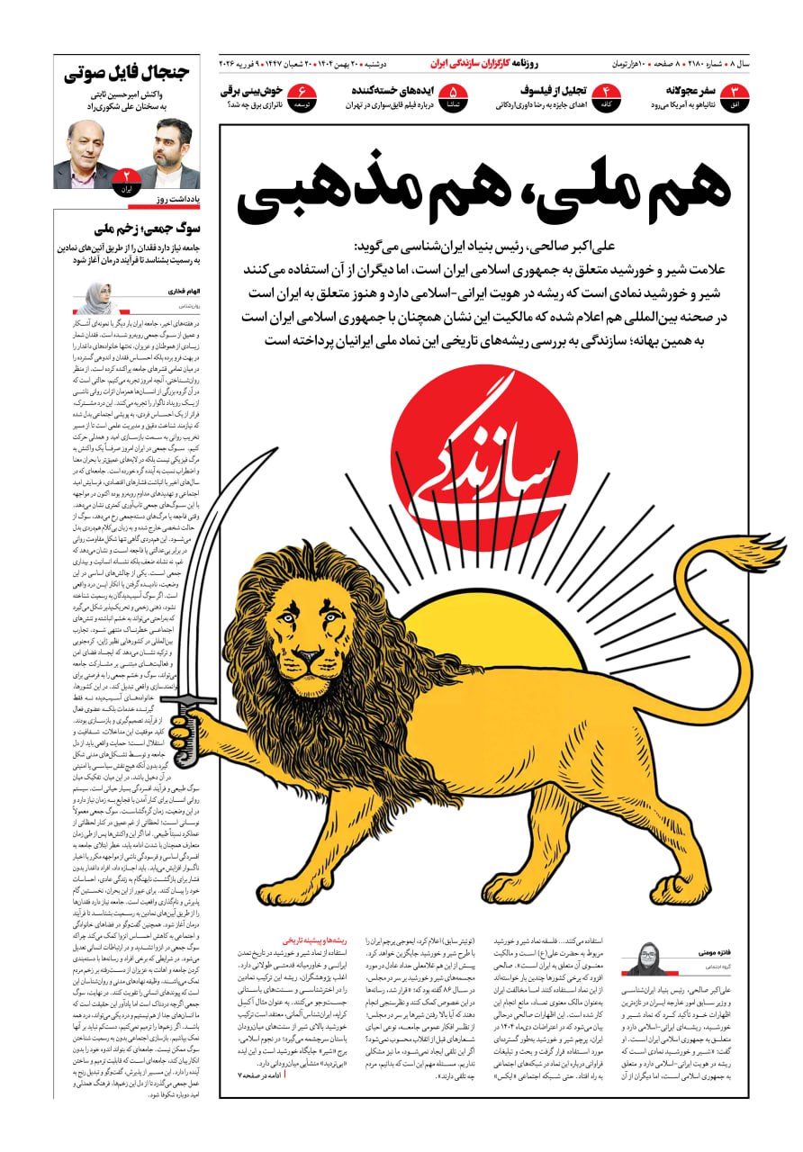 شماره ۲۱۷۹ روزنامه سازندگی یکشنبه ۱۴۰۴/۱۱/۱۹
