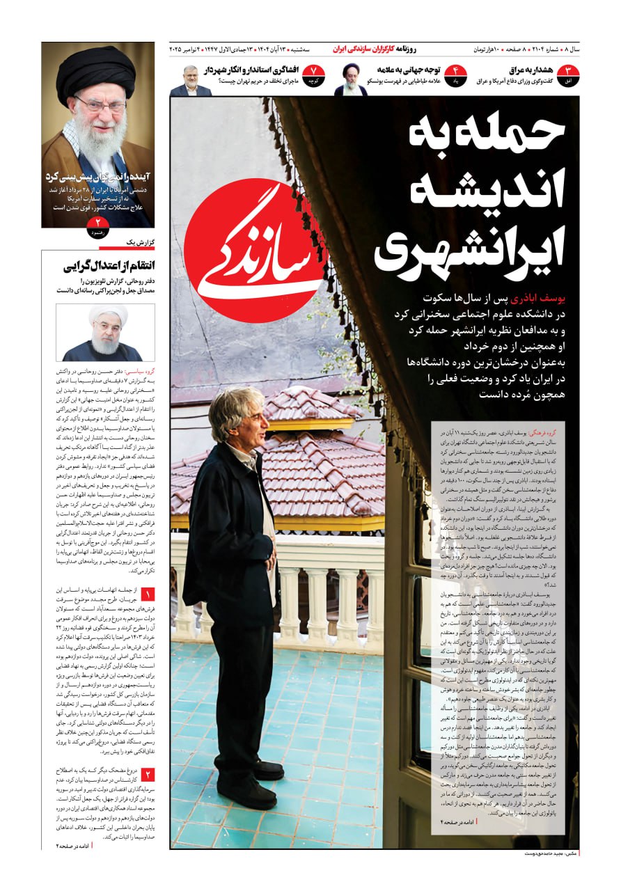 شماره ۲۱۲۹ روزنامه سازندگی پنجشنبه ۱۴۰۴/۰۹/۱۳