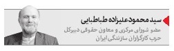 به قلم؛ سیدمحمود علیزادهطباطبایی؛ عضو شورای مرکزی و معاون حقوقی دبیرکل حزب کارگزاران سازندگی ایران