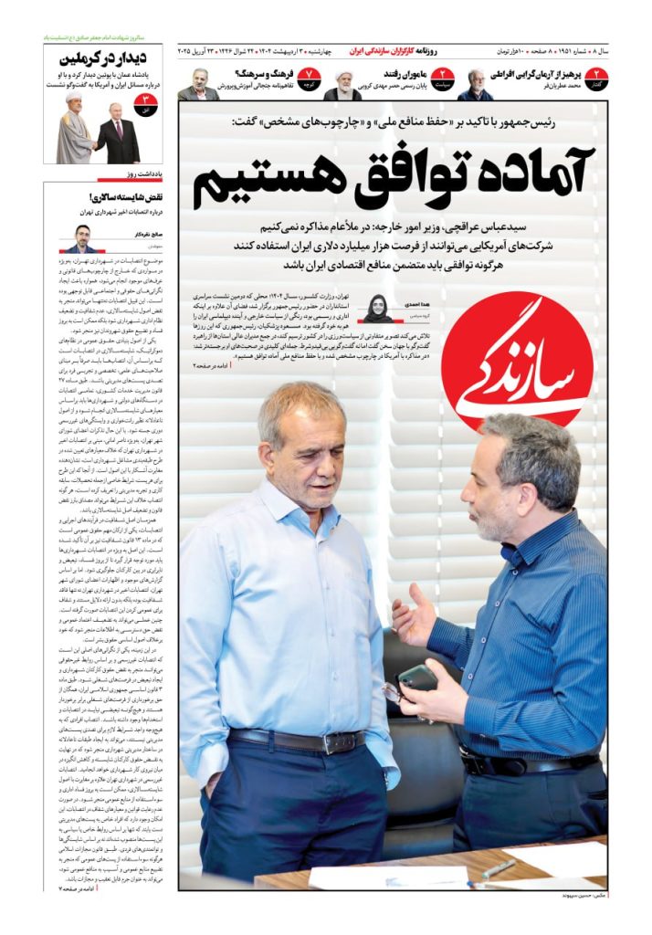 شماره ۲۱۳۷ روزنامه سازندگی یکشنبه ۱۴۰۴/۰۹/۲۳