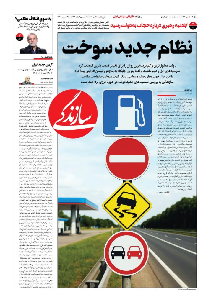 شماره ۲۱۲۳ روزنامه سازندگی پنجشنبه ۱۴۰۴/۰۹/۰۶