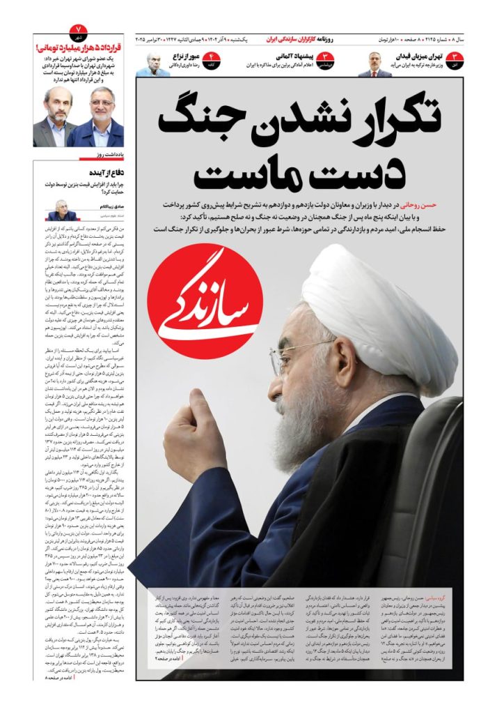 شماره ۲۱۲۶ روزنامه سازندگی دوشنبه ۱۴۰۴/۰۹/۱۰