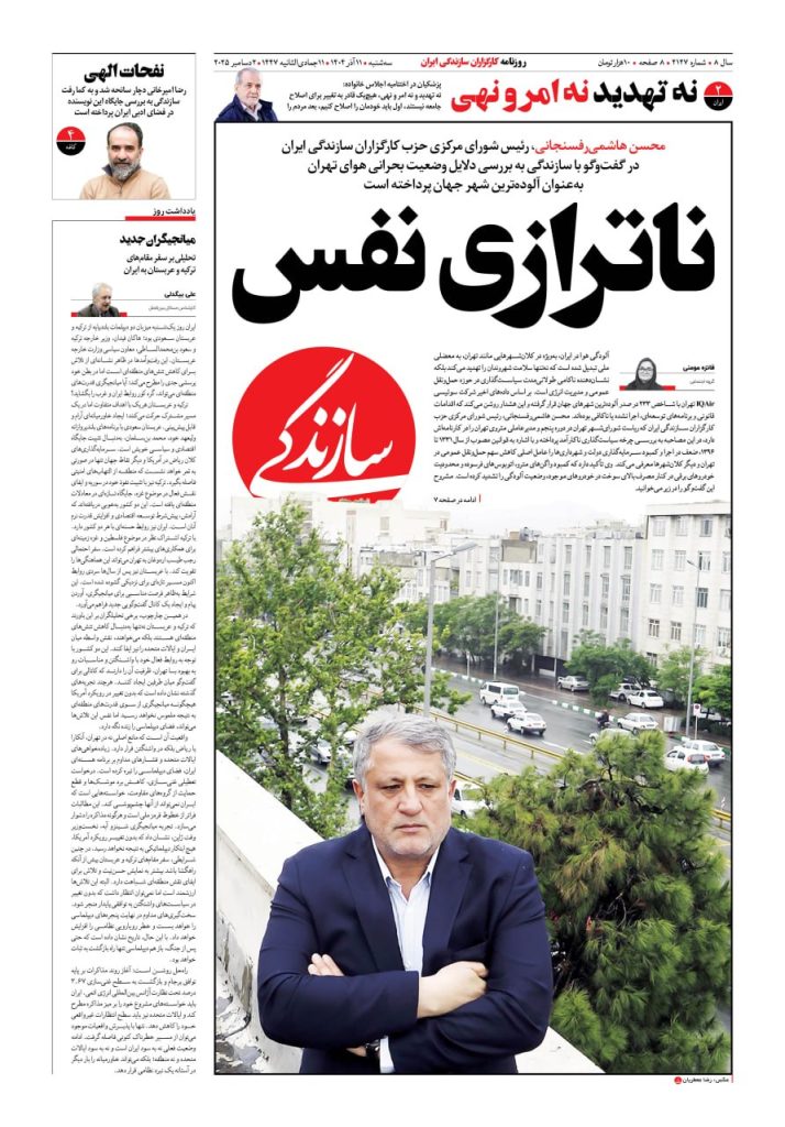 شماره ۲۱۲۷ روزنامه سازندگی سهشنبه ۱۴۰۴/۰۹/۱۱
