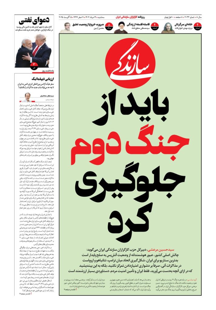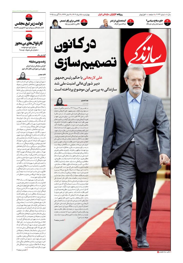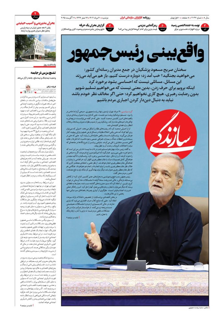 شماره ۲۰۳۱ روزنامه سازندگی یکشنبه ۱۴۰۴/۰۵/۱۲