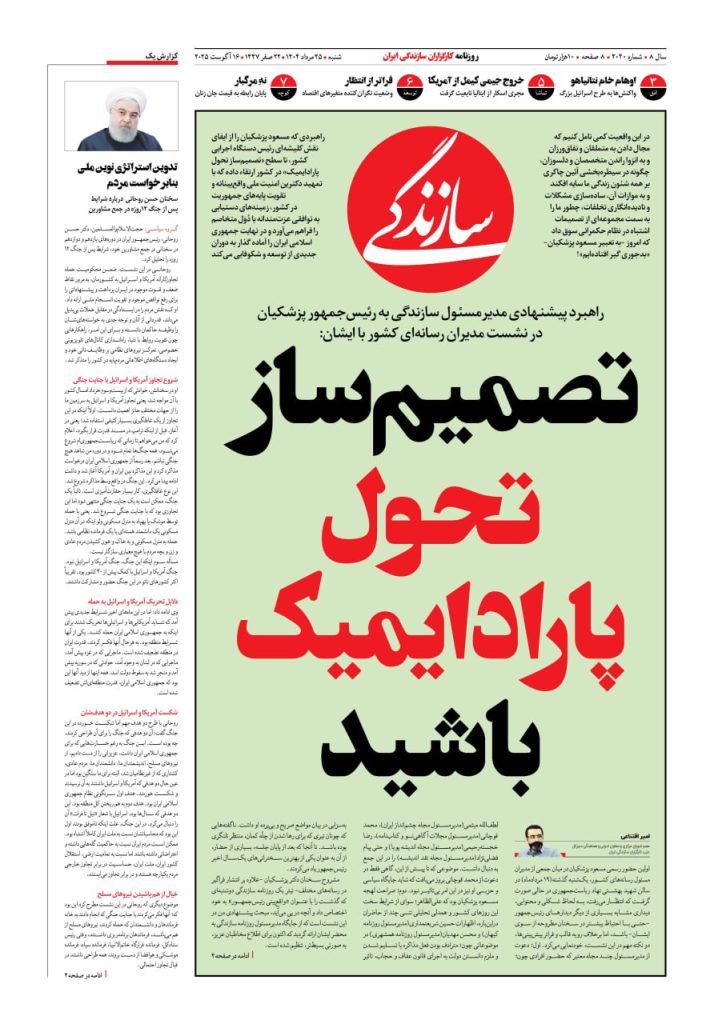 شماره ۲۰۳۶ روزنامه سازندگی یکشنبه ۱۴۰۴/۰۵/۱۹