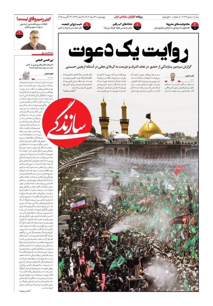 شماره ۲۰۴۰ روزنامه سازندگی شنبه ۱۴۰۴/۰۵/۲۵