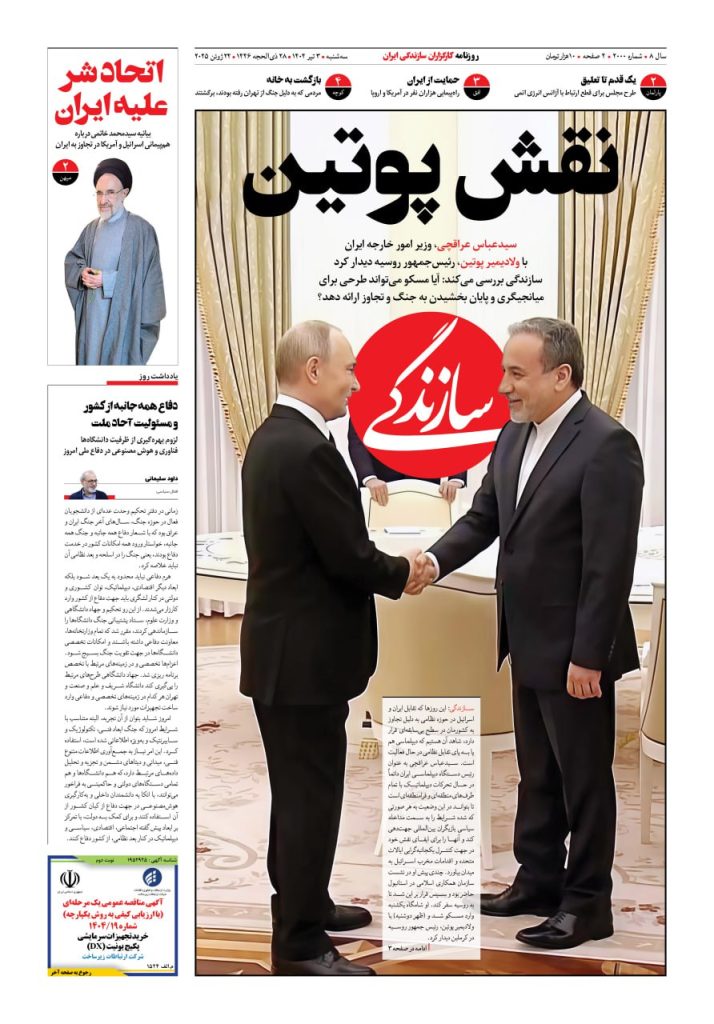 شماره ۲۰۰۲ روزنامه سازندگی پنجشنبه ۱۴۰۴/۰۴/۰۵